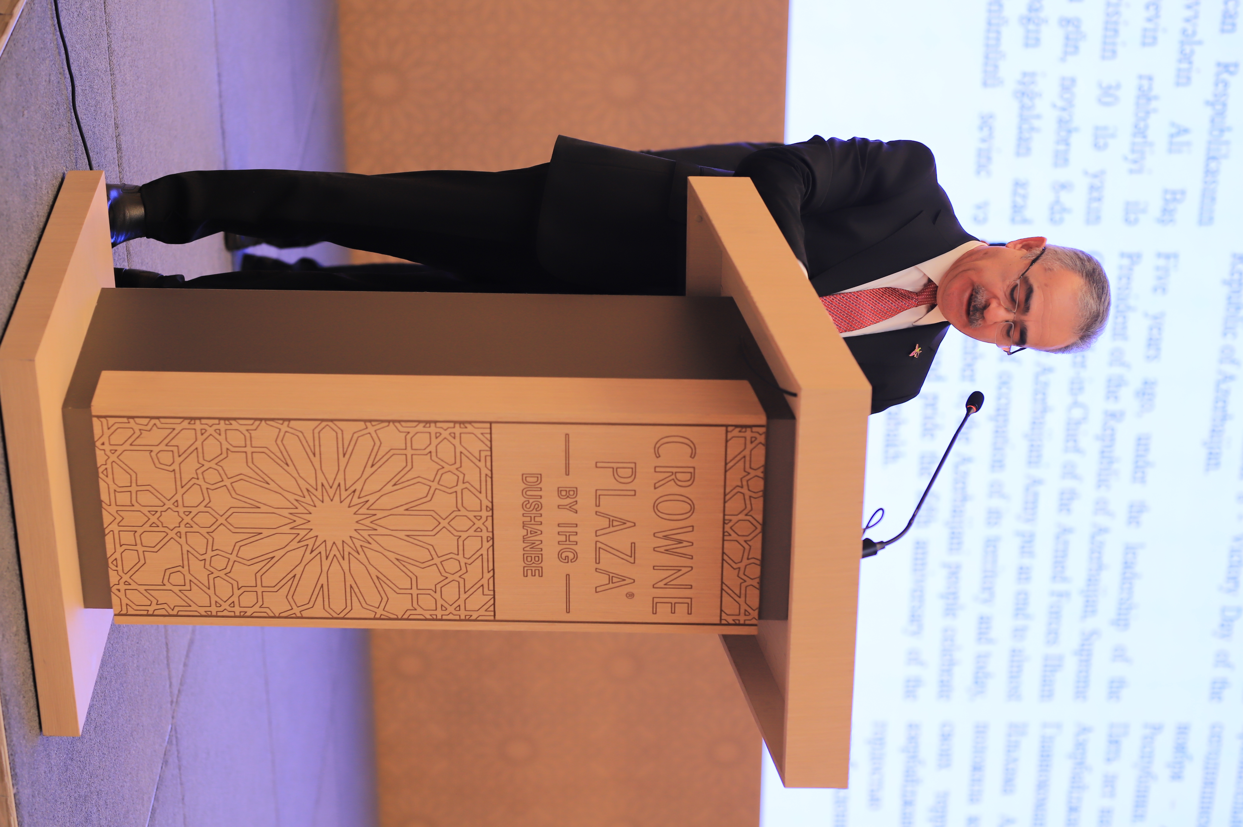 Azərbaycanın Tacikistandakı səfiri Əlimirzamin Əskərov çıxışında beş il əvvəl Prezident İlham Əliyevin rəhbərliyi ilə Azərbaycan Ordusunun 30 ilə yaxın işğal altında olan torpaqları 44 günlük hərbi əməliyyat nəticəsində azad etdiyini xatırladıb. O, bu Qələbənin Ulu Öndər Heydər Əliyev siyasətinin Prezident İlham Əliyev tərəfindən uğurla davam etdirilməsi, diplomatik fəaliyyət və informasiya üstünlüyünün nəticəsi olduğunu vurğulayıb.